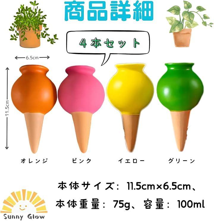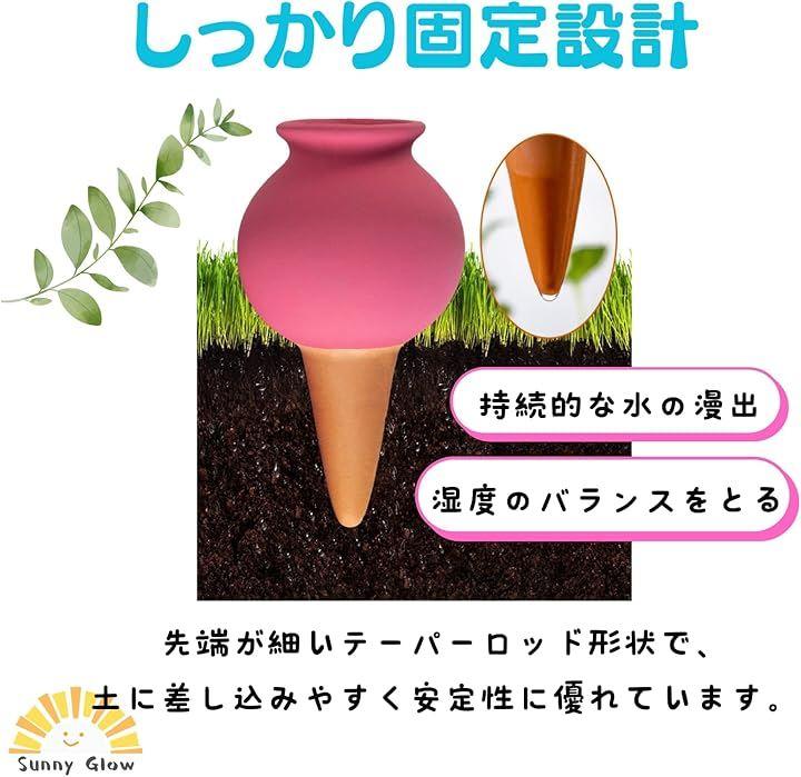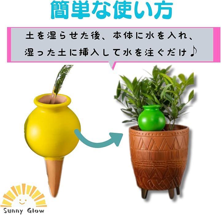 「簡単な使い方」土を湿らせた後、本体を水に浸し、湿った土に挿入して水を注ぐだけ。