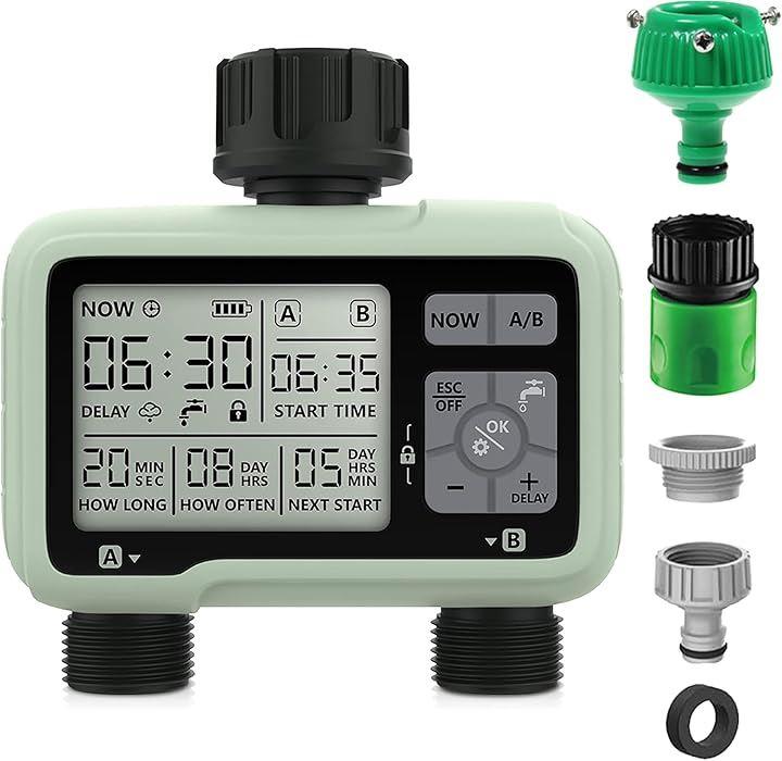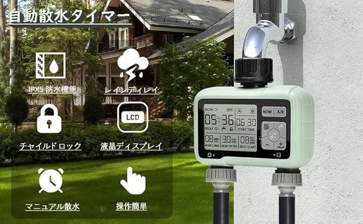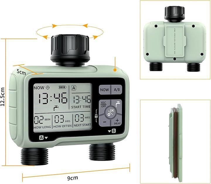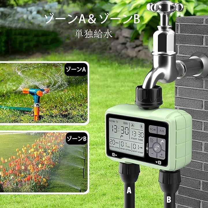 「2つの独立した散水エリア&真鍮材料インターフェイス」:この新しくアップグレードされた灌漑システムは、2つの独立したバルブが装備されている、あなたはより柔軟にあなたの散水計画を設定し、1台のマシンのデュアル-目的機能を実現することができます。