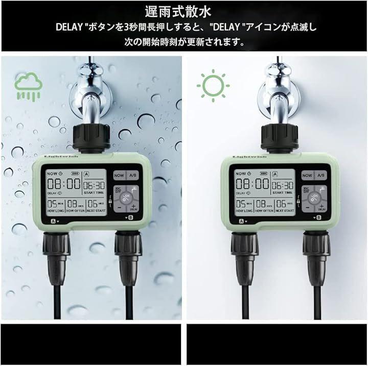 「マニュアルレインディレイ機能 」:この新しいアップグレードされたデジタルガーデンウォータータイマーは、マニュアルレインディレイ関数を備えています。
