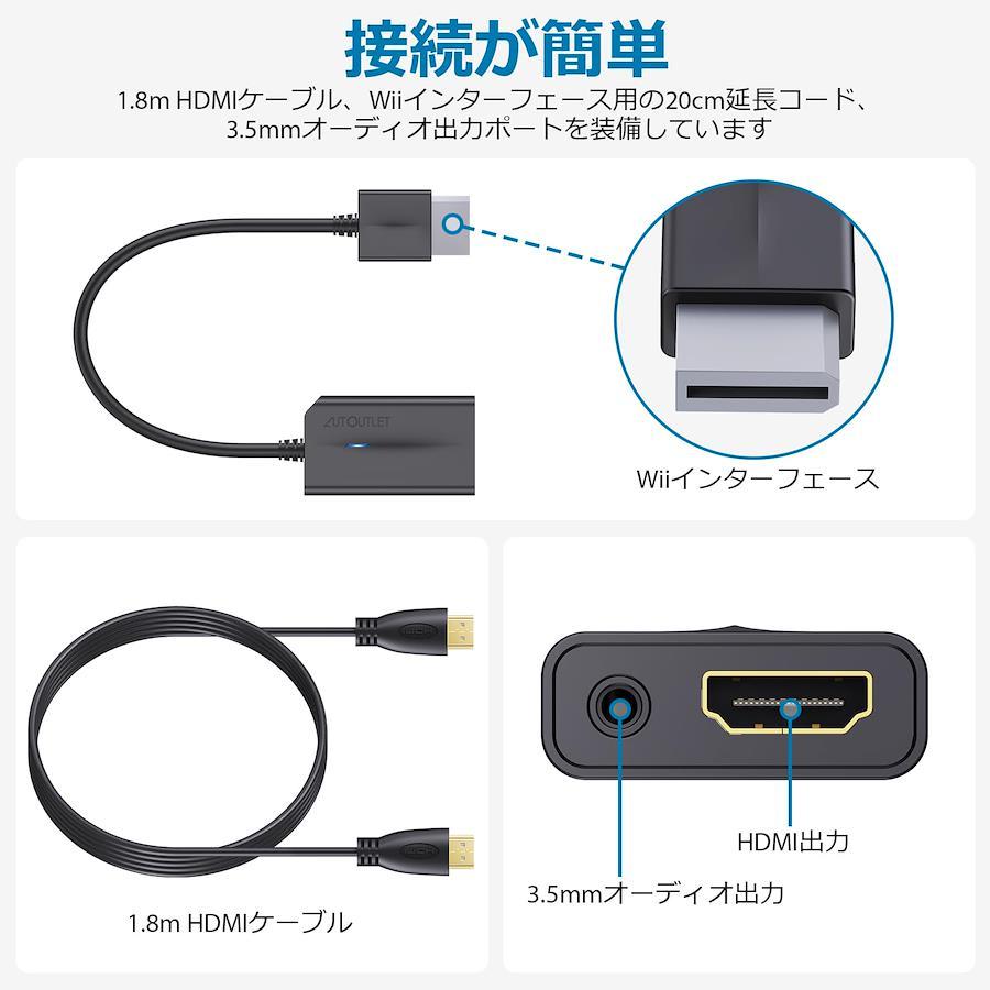 【Compatible with all Wii Display Modes】This AUTOUTLET Wii to HDMI converter is not an upscaler compatible with NTSC 480i 480p and PAL 576i. 【AUTOUTLET Wii to HDMI Converter】The Wii to HDMI converter supports all Wii display modes (NTSC 480i 480p, PAL 576i, and not Wii Mini) and automatically recognize and convert 720P or 1080P. It provides a more realistic and higher definition view. 1.8M HDMI cable and 20CM WII game desk interface with an extension cord is added to make it easy to connect devices in different occasions Excellent Audio/Video Quality: Adopts a new decoder chip, advanced signal processing, digital video and audio output in full HDMI format, no transmission loss. Advanced video signal processing can improve image accuracy, color and clarity, no jagging or hysteresis and ideal for Wii displays, projectors and TVs 【Equipped with 3.5mm Audio Port Jack】With 3.5mm audio output port, you can use other 3.5mm headphone jack to connect speakers and headphones. It won't get in the way even when playing in the middle of the night, and is a must-have for midnight masters 【INDICATOR + PLUG & PLAY】 Designed with an indicator light, you can easily check whether the product is working normally. Plug and play for quick and easy installation 【Packaging/Services】Package includes a converter, 8.0 inches (20 cm) interface cable for WII gaming and 1.8 m HDMI cable. All parts demand to bring you maximum comfort experience Our warranty service has reached 18 months except for parts, if you have any questions and help, please contact us at any time