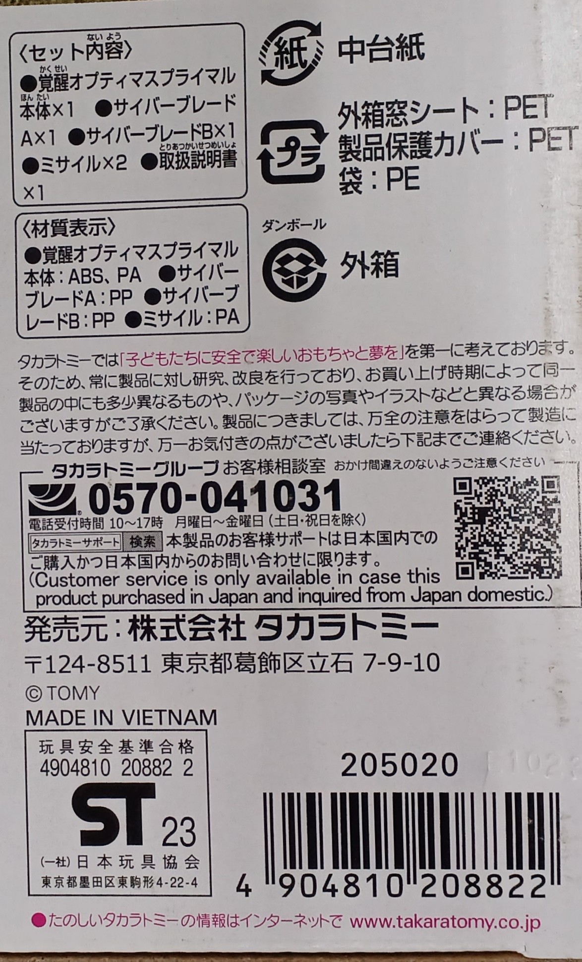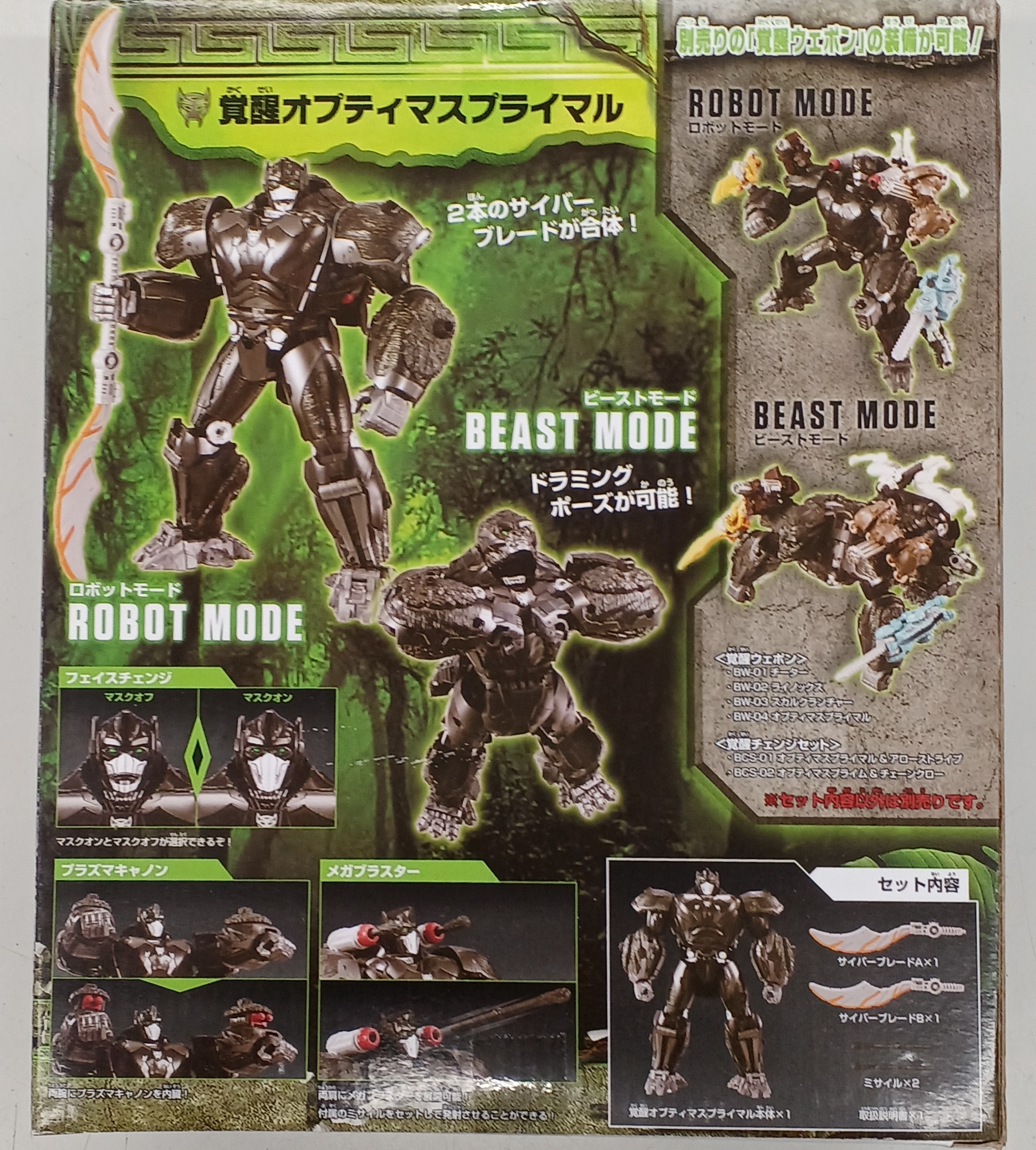 ■付属品覚醒オプティマスプライマル本体(1),サイバーブレードA(1),サイバーブレードB(1),ミサイル(2),取扱説明書(1)