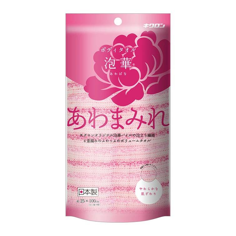 キクロンオリジナル泡華パイルの泡立ち繊維4重編のふわふわボリュームタオルです。ピンク。