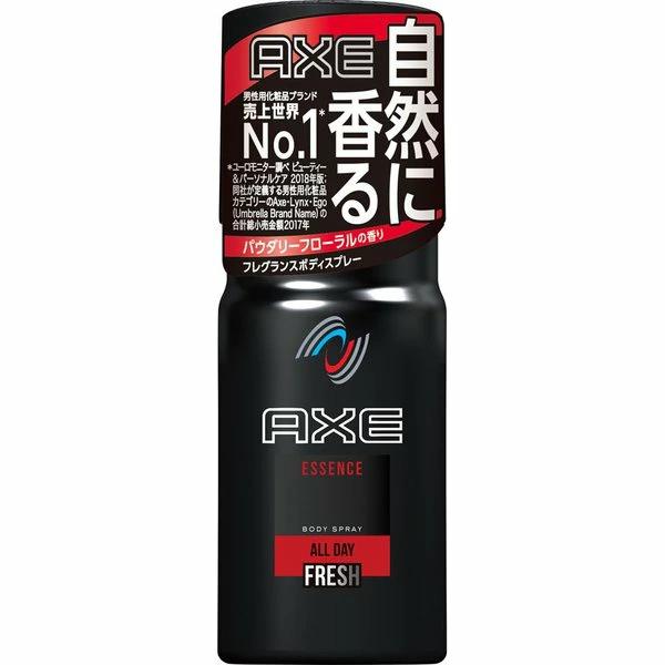 商品区分:化粧品 【AXE(アックス) フレグランスボディスプレー エッセンスの商品詳細】 ●さりげなく香り続ける男性用フレグランスボディスプレーです。 ●ほのかに甘いパウダリーフローラルの香り。 【使用方法】 ・よく振った後、胸や首筋、手首、腕などにスプレーしてご使用ください。首から下の全身にお使い頂けます。 ・肌から15cm以上離してスプレーしてください。 ・上向きでご使用ください。 ★スプレーの仕方 ・キャップは外さない。 1.回す 2.よく振る 3.噴射口の向きを確認してスプレーする。 4.使用後は戻す。 【成分】 LPG、変性アルコール、香料、エチルヘキシルグリセリン、トコフェロール+ 【注意事項】 ・同じ箇所に連続して3秒以上スプレーしない。凍傷等のおそれがある。 ・顔や粘膜への使用は避け、除毛・脱毛直後や傷・はれもの・湿疹等、異常のあるときは使用しない。 ・使用中または使用後に、肌に異常が現れた場合は使用を中止し、皮ふ科医等に相談する。 ・目に入ったときは、すぐに水で洗い流す。 ・直接吸い込まないように注意する。 ・換気の良い所で使用する。 ・長時間にわたるスプレーはしない。 ・子供の手の届くところに置かない。 ・喫煙中に使用しない。 ・衣服につくとシミになることがあるので、肌に直接スプレーする。 ・直射日光のあたる肌につけると、まれにかぶれたり、シミになることがあるので、注意する。 ※捨てるときは、火気のない風通しのよい戸外で、噴射音が消えるまでボタンを押しガスを抜く。 ・高圧ガスを使用した可燃性の製品であり、危険なため、下記の注意を守ること。 (1)炎や火気の近くで使用しないこと。 (2)火気を使用している室内で大量に使用しないこと。 (3)高温にすると破裂の危険があるため、直射日光の当たる所やストーブ、ファンヒーター等の近くなど温度が40度以上となる所に置かないこと。 (4)火の中に入れないこと。 (5)使い切って捨てること。 高圧ガス:LPG 【原産国】タイ 【区分】日本製・医薬部外品 【発売元、製造元、輸入元又は販売元】 ユニリーバ 商品に関するお電話でのお問合せは、下記までお願いいたします。 受付時間9:00-17:00(土・日・祝日、年末年始を除く) ヘアケア製品:0120-500-513 スキンケア製品:0120-110-747 ポンズインスティテュート:0120-500-076 ホームケア製品:0120-362-170 紅茶製品:0120-238-827 リニューアルに伴い、パッケージ・内容等予告なく変更する場合がございます。予めご了承ください。 (AXE ボディースプレー スイート スィート) ユニリーバ 153-8578 東京都目黒区上目黒2-1-1 ユニリーバ・ジャパン株式会社 ※お問合せ番号は商品詳細参照
