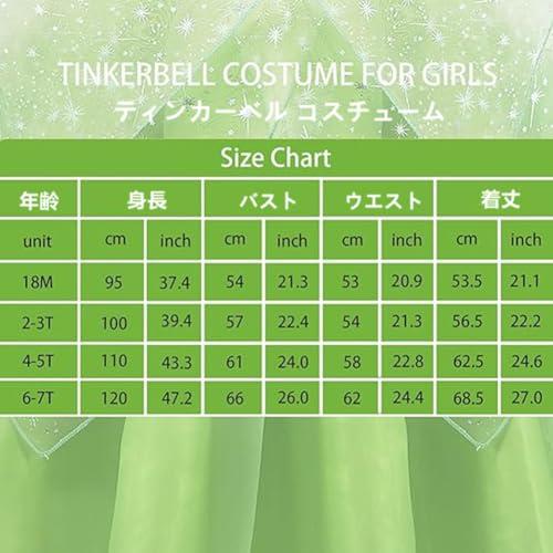 登録情報取り扱い案内 手洗いのみ1.??ハロウィンの定番!Tinker Bellのなりきり7点セット。セット内容:妖精 コスチューム+羽+ティアラ+スティック+ネックレス+リング+ピアス(ラメが落ち易くてご了承の上ご購入をお願い致し ます。)子供の肌に優しい綿生地を使っています。ゆったりした着物で生地が柔らかくて、肌触りがよく、通気性がよい、お肌の弱いお子様にも安心です?。 .2.??緑の妖精になりきれるコスプレドレス。スカートは3層構造になっており、ふんわりとしたボリューム感があり、スカートの襟にきれいなレースを採用しで、スカート全体を柔らかな優しい可愛らしい印象を与える?。 .3.??大人気ティンカーベルコスチューム!色が明るくて、きれいで、色鮮やかで可愛らしい大きな蝶の翼を着て、美しい妖精になって、焦点になって、子供が楽しみになってます。ハロウィーンパーティーの仮装は最適です?。 .4.??【商品内容】ティンカーベルドレス+翼 【サイズ(110)】ウェスト58cm バスト61cm 着丈62.5cm 年齢4-5歳 購入前にキッズドレスの説明で詳細サイズ表をご参照ください。商品詳細を必ずご確認後、ご了承頂いた上でご購入をお願いします?。 .5.??USJなどでの着用やハロウィン仮装コスチュームにおすすめ。結婚式などの余興のコスプレ衣装にもオススメ。クリスマスやお遊戯会、幼稚園、保育園、小学生のイベント、コンパニオン 忘年会 新年会 飲み会、文化祭、学園祭、誕生日などのイベントやコスプレ仮装パーティにも最適?。 .