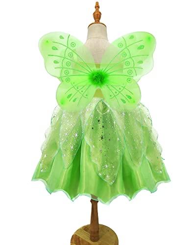 Axaxa Tinkerbell Dress (Butterfly Fairy Costume + Butterfly Wings) 7-Piece Set, Fairy Girl Princess Dress, Kids Cosplay