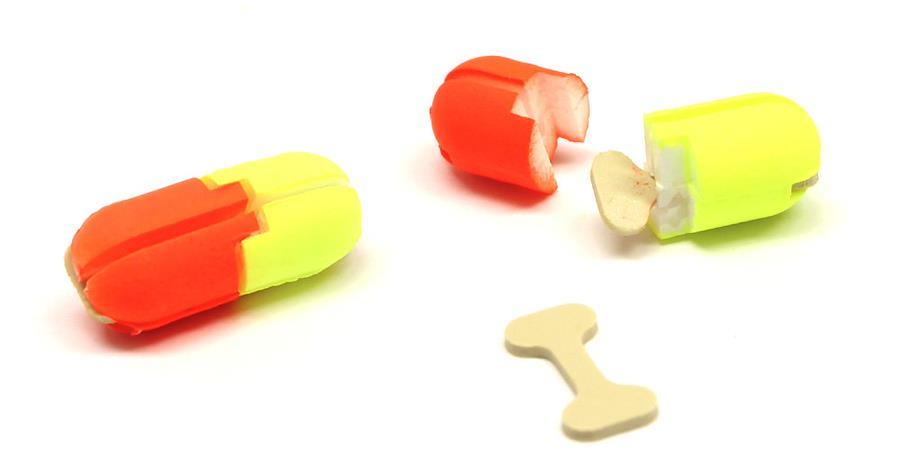 浮力の高い発泡素材を使用しています。2分割の本体をねじるように回転させることでセンターゴムとティペット(道糸)が巻きつく構造です。フライを外すことなく取り外しやタナ(位置)を変えられ、繰り返し使用できます。