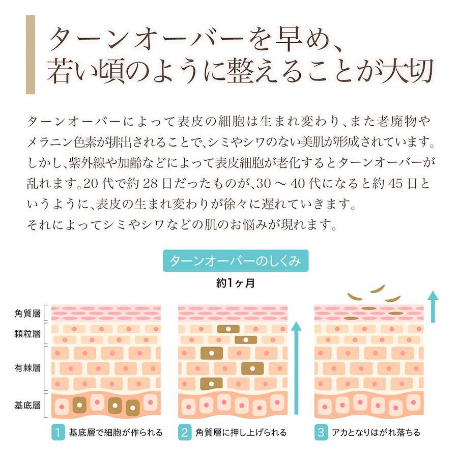 In other words, in order to regenerate beautiful skin, it is important to accelerate turnover and restore it to the way it was when you were younger.