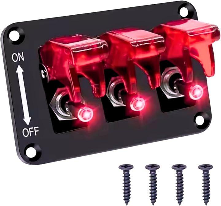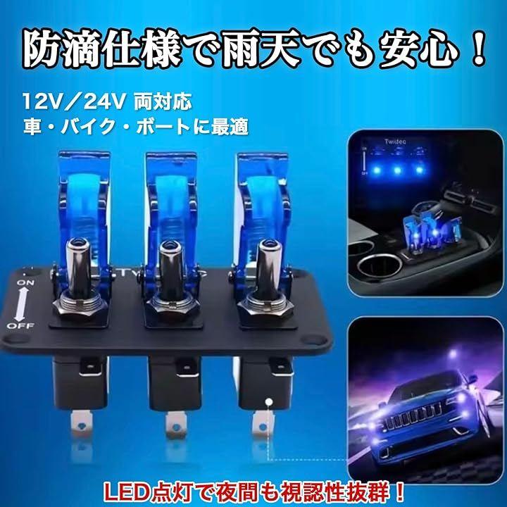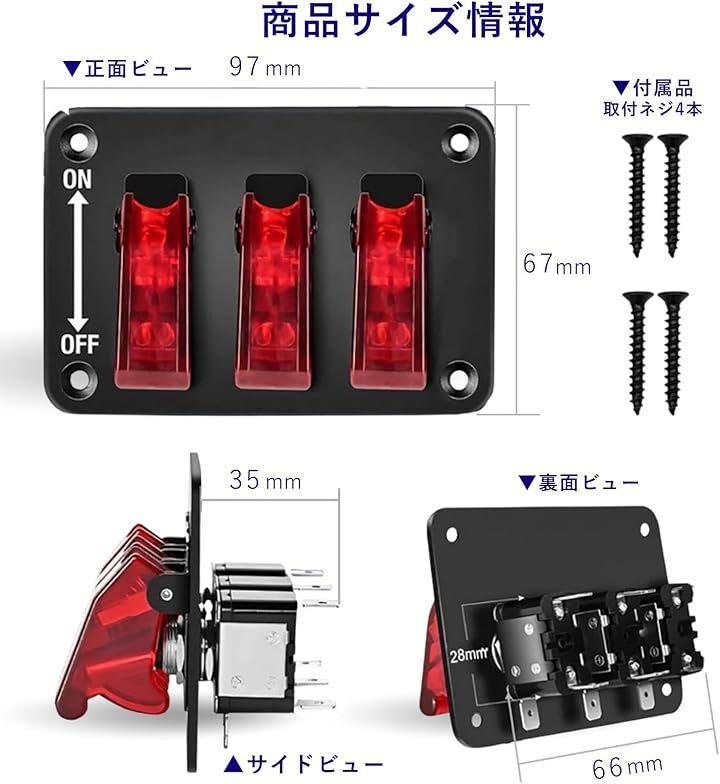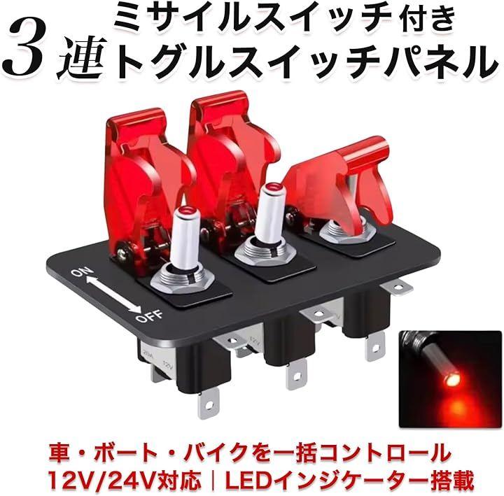 「スイッチパネルで車内を自由にカスタマイズ」ミサイルスイッチ3連タイプで、車・RV・トラックのライト類やアクセサリーを手元で操作。