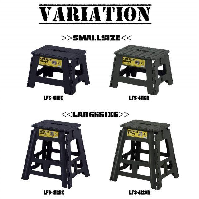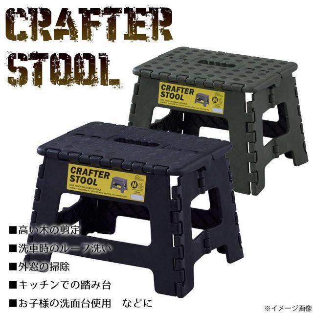 ダークカラーのクラフタースツール。ポリプロピレン製の折りたたみ式スツールで、耐荷重は80kgと丈夫な作り。MサイズとLサイズの2サイズ展開。ブラックとグリーンの2色展開。※完成品でのお届けです。