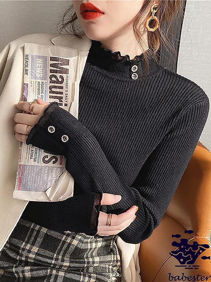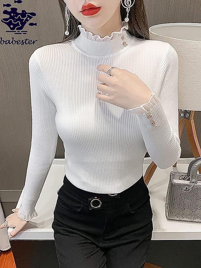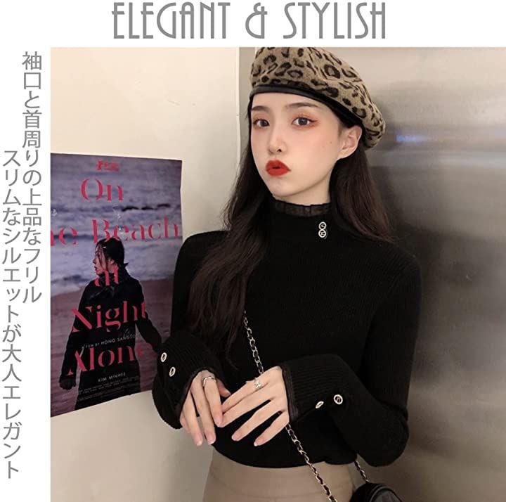 ・伸縮性の高い素材で編まれ、優しくフィットする着心地抜群なハイネックトップス。