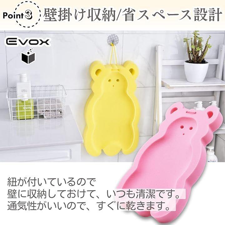 「やわらかスポンジで快適沐浴」ベビーバスマットはふんわりとしたスポンジ素材を使用し、赤ちゃんの繊細な肌にもやさしくフィット。