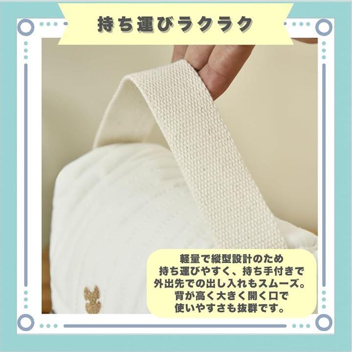 「持ち運びラクラク」軽量で縦型設計のため持ち運びやすく、持ち手付きで外出先での出し入れもスムーズ。