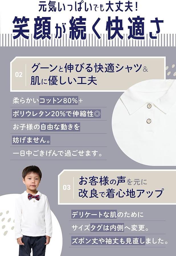 「素材と仕様を改良」白シャツはコットン80%・ポリウレタン20%で柔らか&動きやすさ抜群。