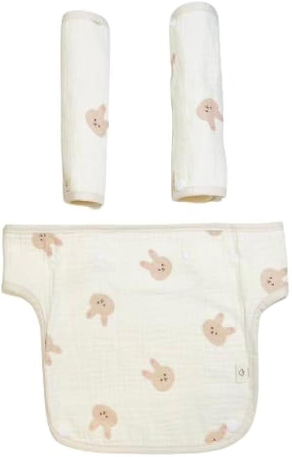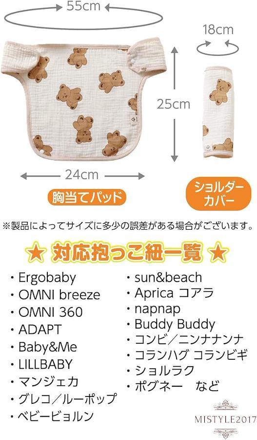 「商品仕様」*サイズ:胸当てパッド/横24-55cmx縦25cm、ショルダーカバー/横18cm *素材:綿100% *セット内容:ショルダーカバーx2、胸当てパッドx1