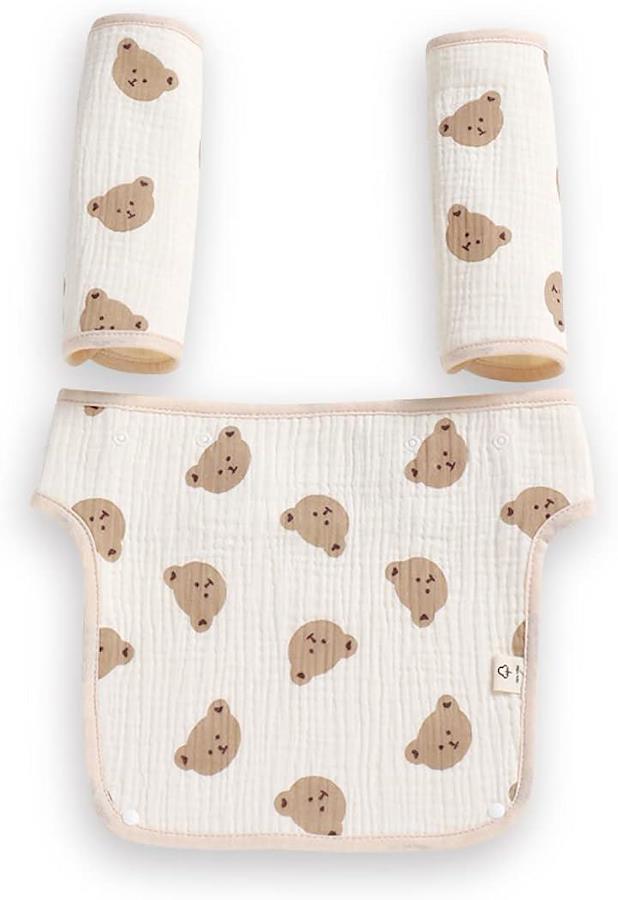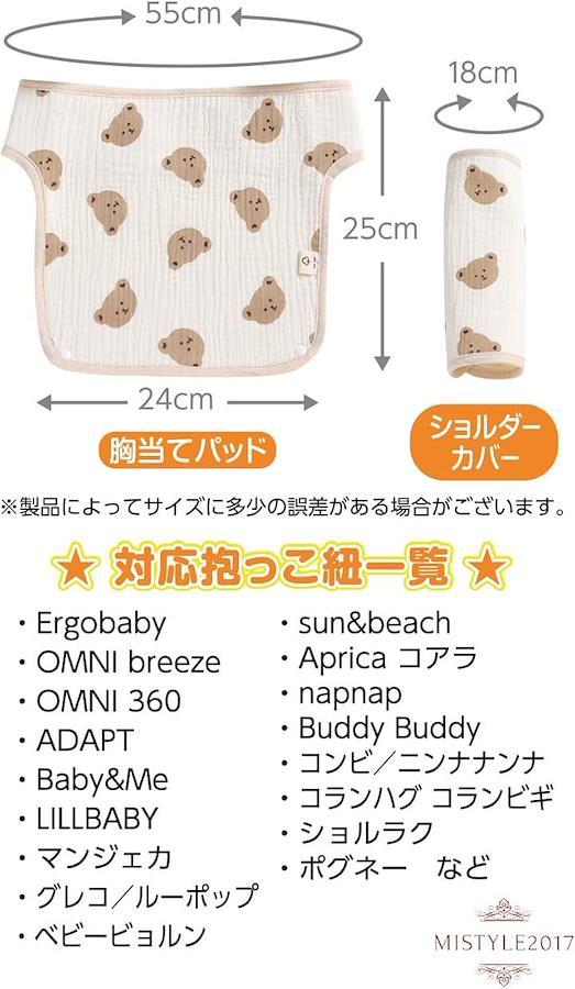 「商品仕様」*サイズ:胸当てパッド/横24-55cmx縦25cm、ショルダーカバー/横18cm *素材:綿100% *セット内容:ショルダーカバーx2、胸当てパッドx1