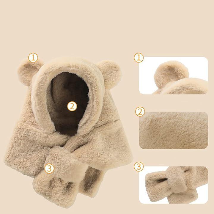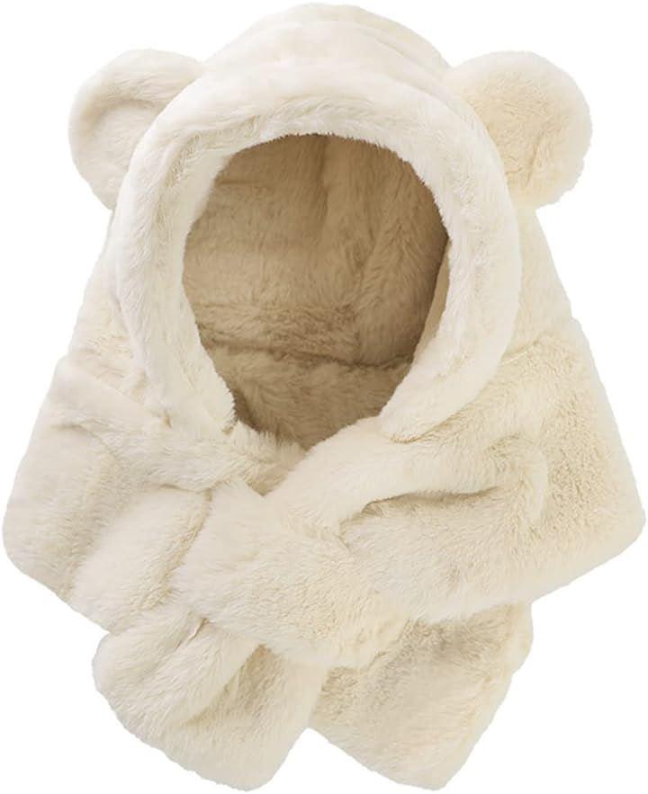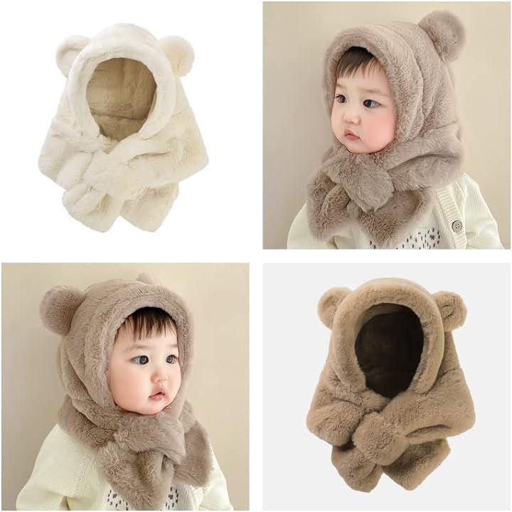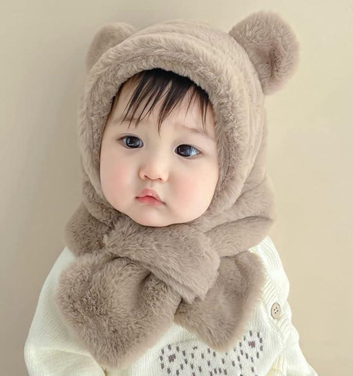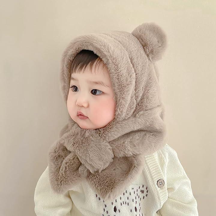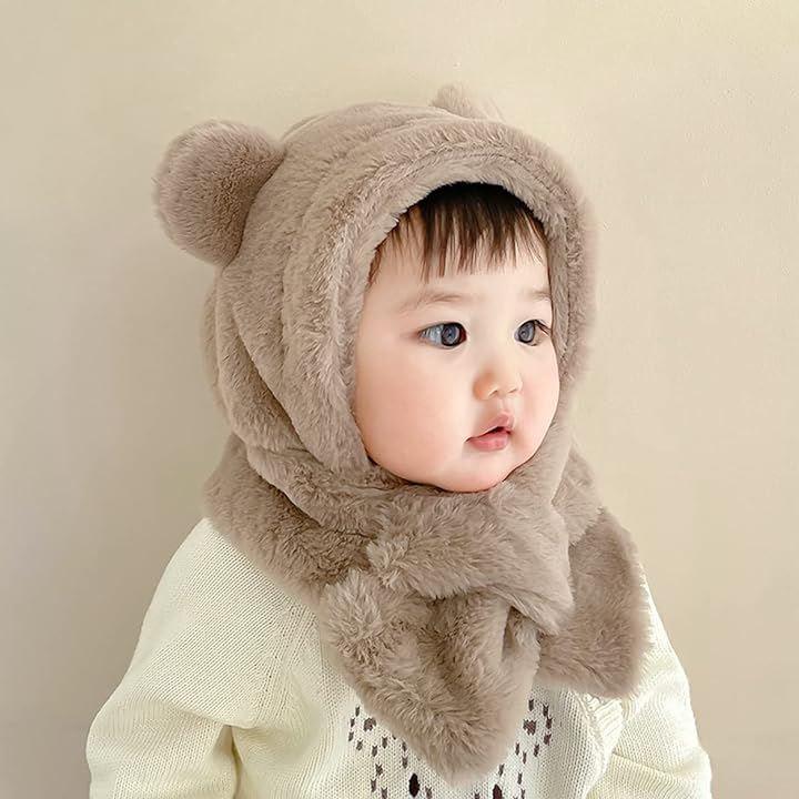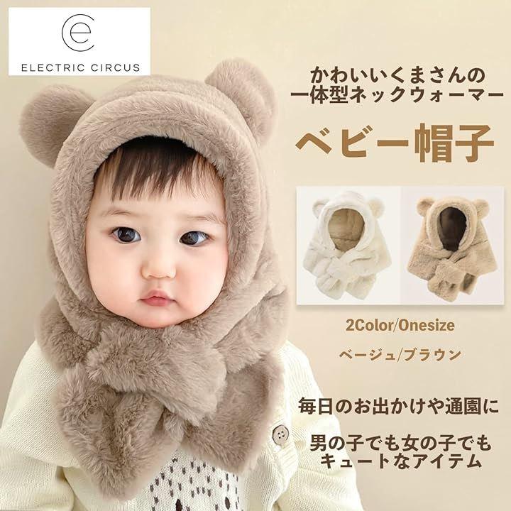 かわいい耳付きとネックウォーマーが一体型のベビー帽子