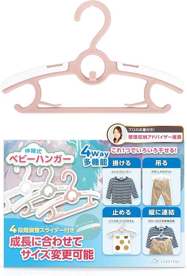 「オールインワン。伸縮式・4Way多機能ハンガー」肩のスライダーを4段階(28 - 37cm)で調節できるので、「赤ちゃん>園児>小学生>中学生>高校生>大学生」と子どもの成長に合わせて”買い替え不要”で使えます。