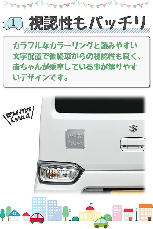 ・「 視認性もバッチリ 」後続車へ赤ちゃんが乗車している事を知らせ、安全第一で運転している事を知らせます。