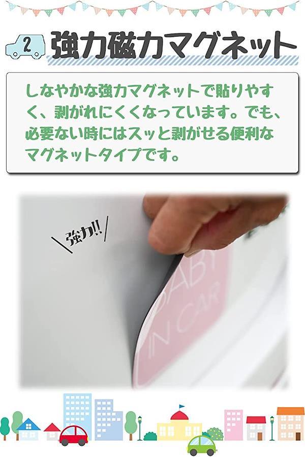 赤ちゃんが乗車中である事を後続車に知らせ、優しい運転につなげる事が可能です。