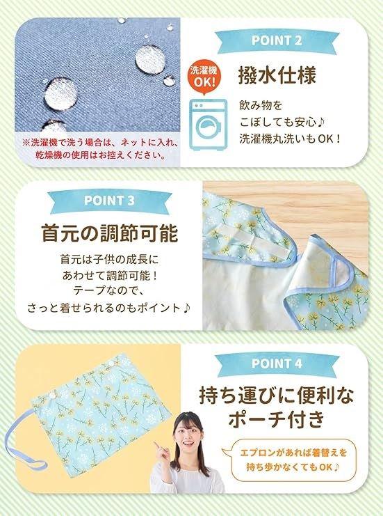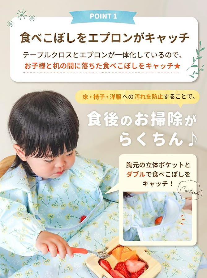 ・テーブルクロスとエプロンが一体化。食べこぼしをキャッチ。