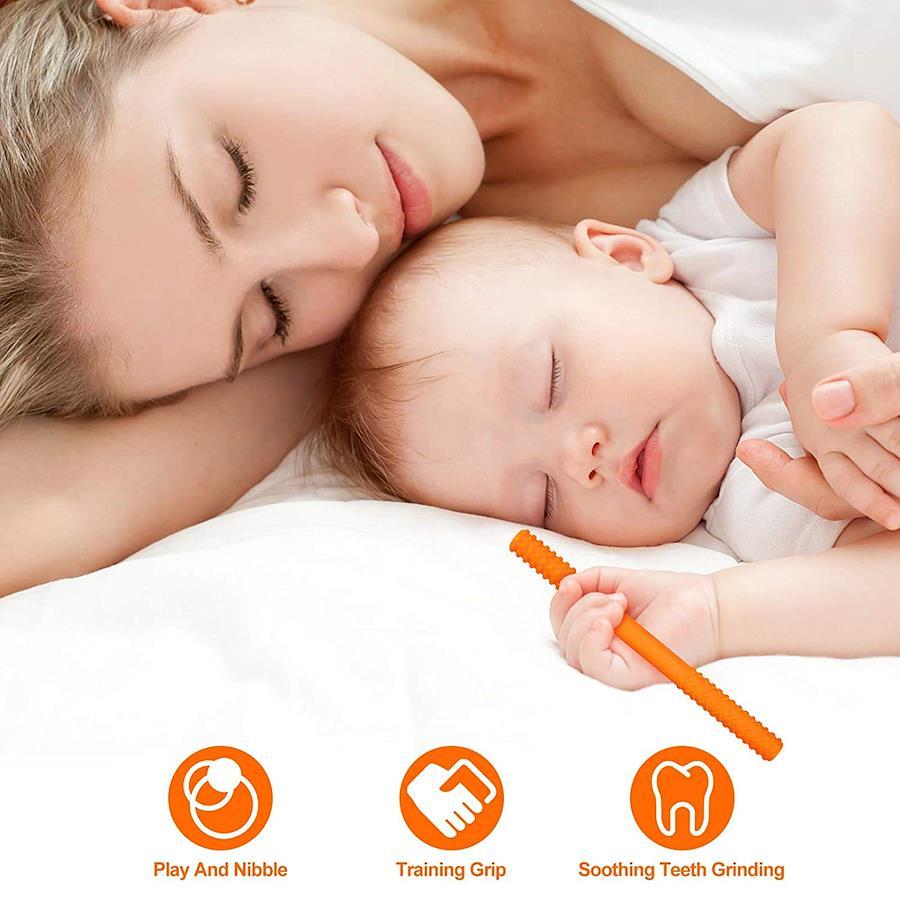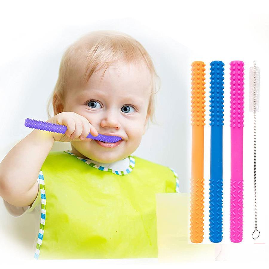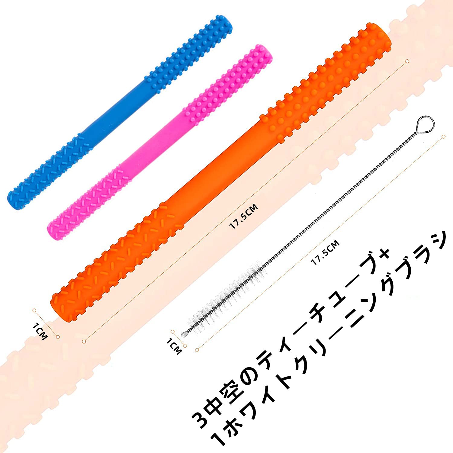 ベビー歯固め ストロー形状 歯痛みを和らげます 食品級シリコン 安全無毒 BPAフリー 3~12ヶ月 新生児 おもちゃ-生産お祝い(3本のストロー+1本のクリーナーブラシ)
