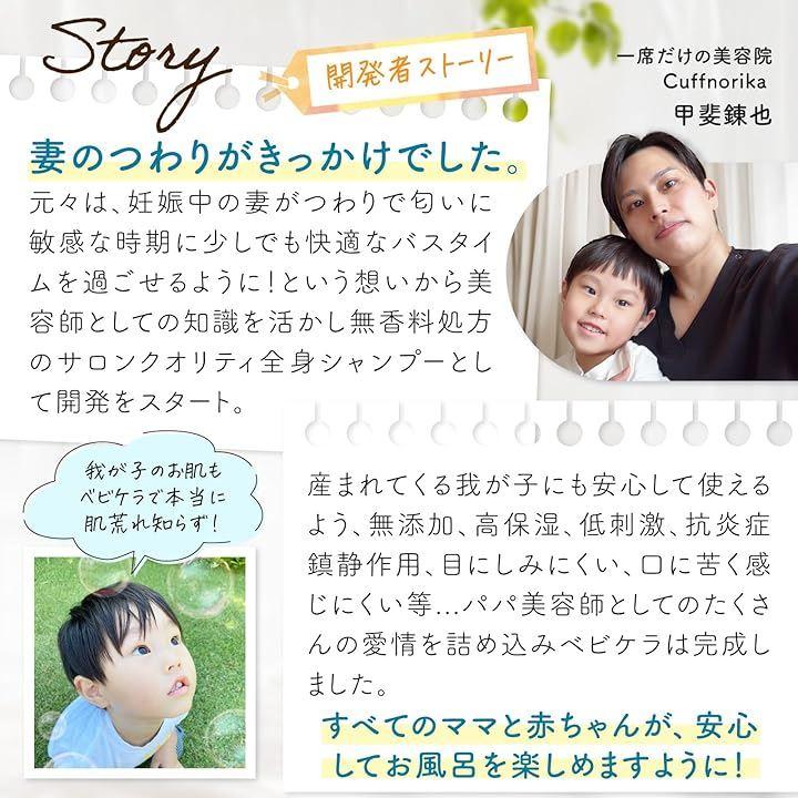 「現役美容師が本気で開発] お肌に悩める全ての赤ちゃん・我が子の肌へ一切の妥協してい ない 美容室専売品のクオリティベビーソープです。