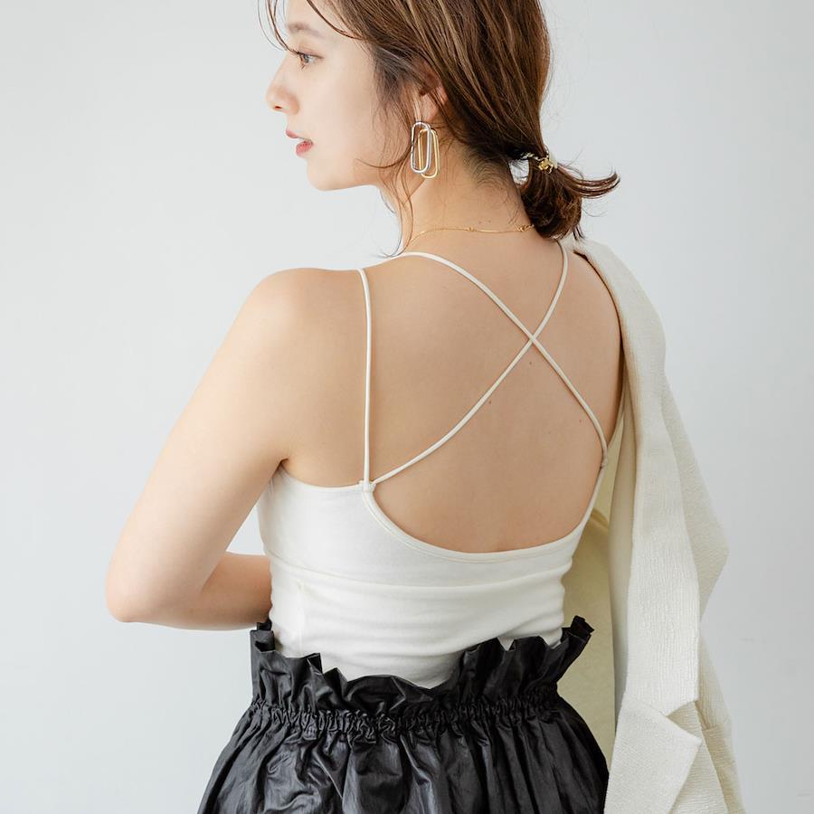 バッククロスデザインを生かしたコーデもおすすめです。