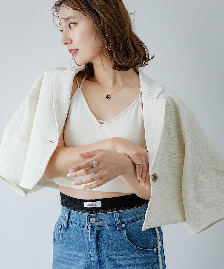 シアートップスやジャケットのインナーとしても大活躍。