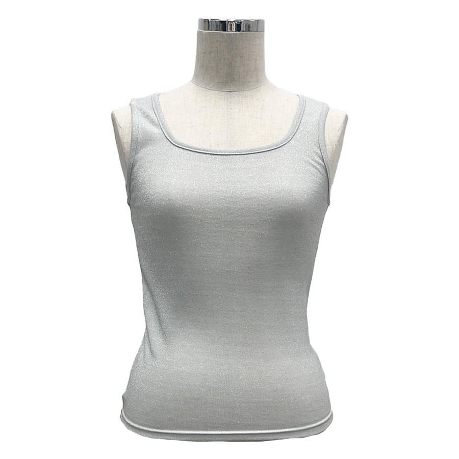 ストレッチ性のある柔らかなカット素材で仕立てた、グリッターが目を惹くタンクトップ。
