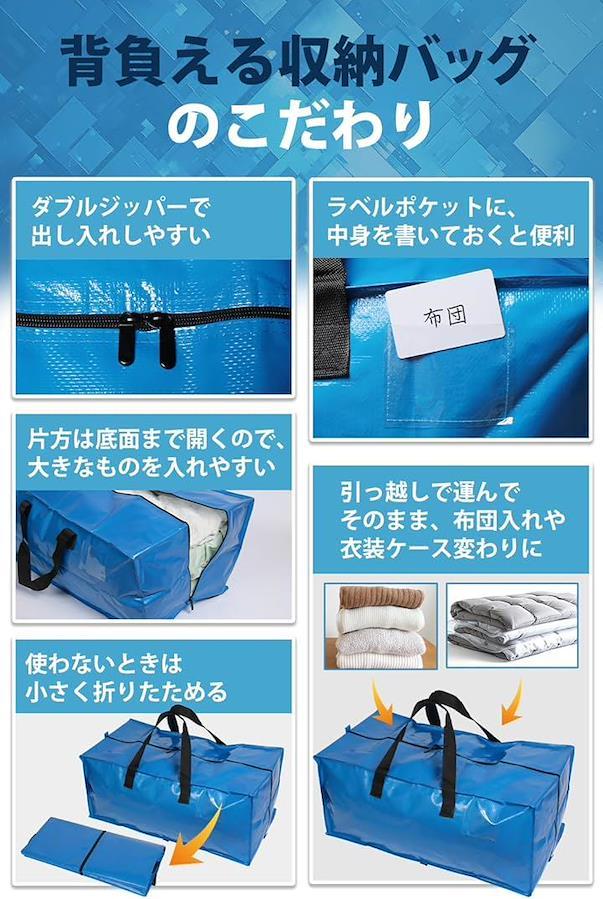 *サイズ:縦73x横37x高さ31cm*素材:PP(ポリプロピレン)*内容:収納袋/肩当て(1組2個)*色:青(2個/4個)・透明(2個/4個)