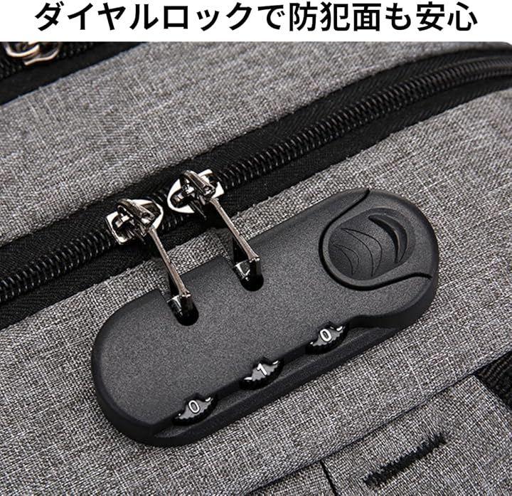 「防犯・快適設計:パスワードロック&肩ストレス軽減」3桁のパスワードロック機能で防犯面も。