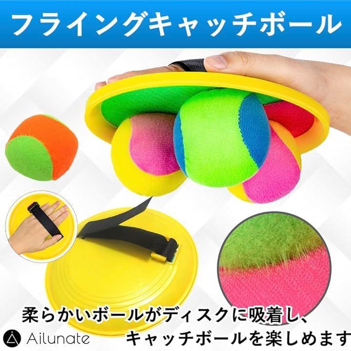 「フライングキャッチボール」柔らかボールがフライングディスクに吸着することで野球グローブのようにキャッチすることができます。