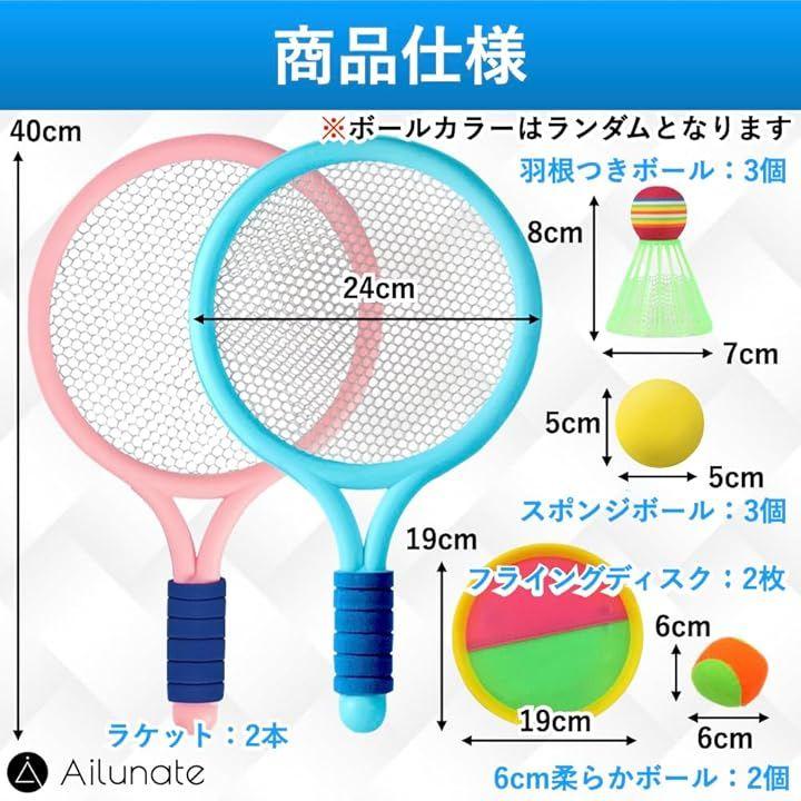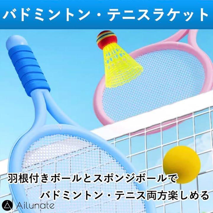 「バドミントンとテニス両方楽しめる」羽根つきボール(バドミントンシャトル)とスポンジボールが同梱しており、羽根付きボールではバドミントンを楽しめます。