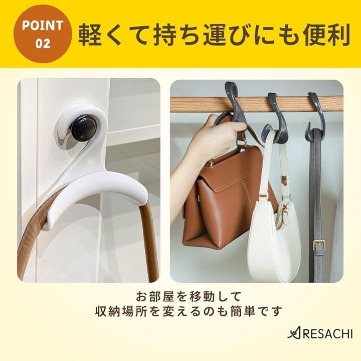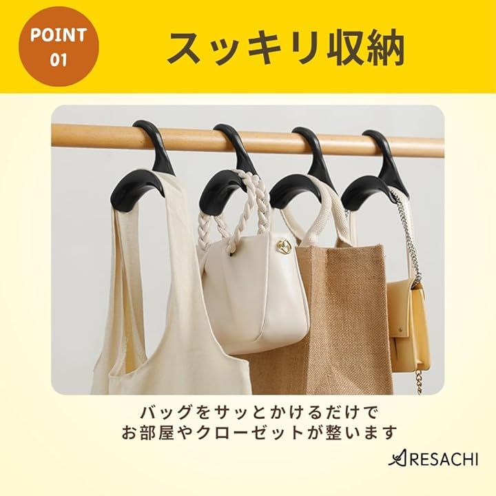 「簡単な使い方でスッキリ収納」 バッグをさっとかけるだけで、お部屋やクローゼットがスッキリと整理できます。