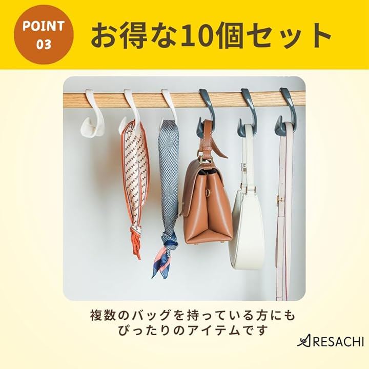 「セットでお得に使える10個入り」 10個セットなので、複数のバッグを持っている方にもぴったりのアイテムです。