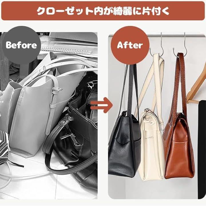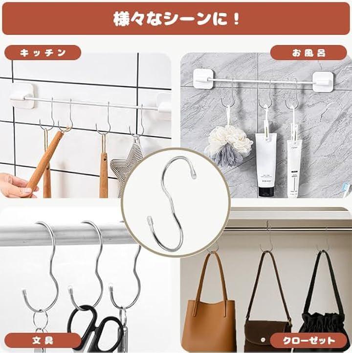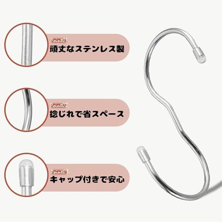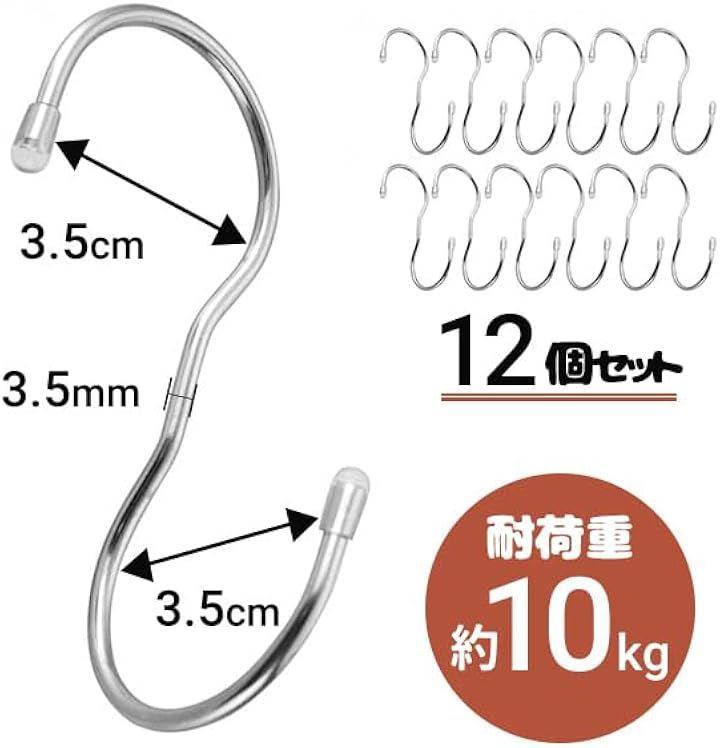 「便利な収納」12個パックのS字フックでクローゼットすっきり。