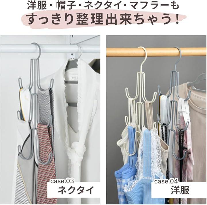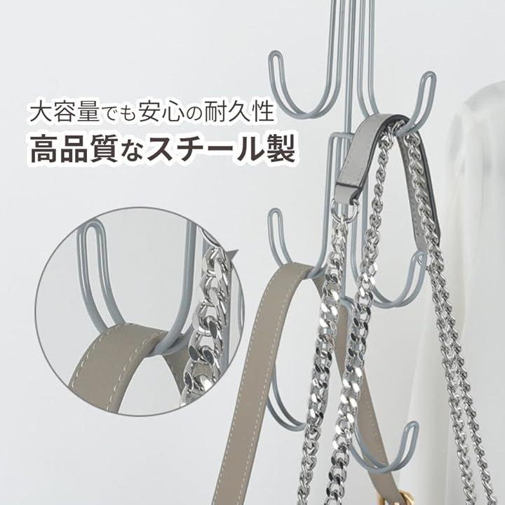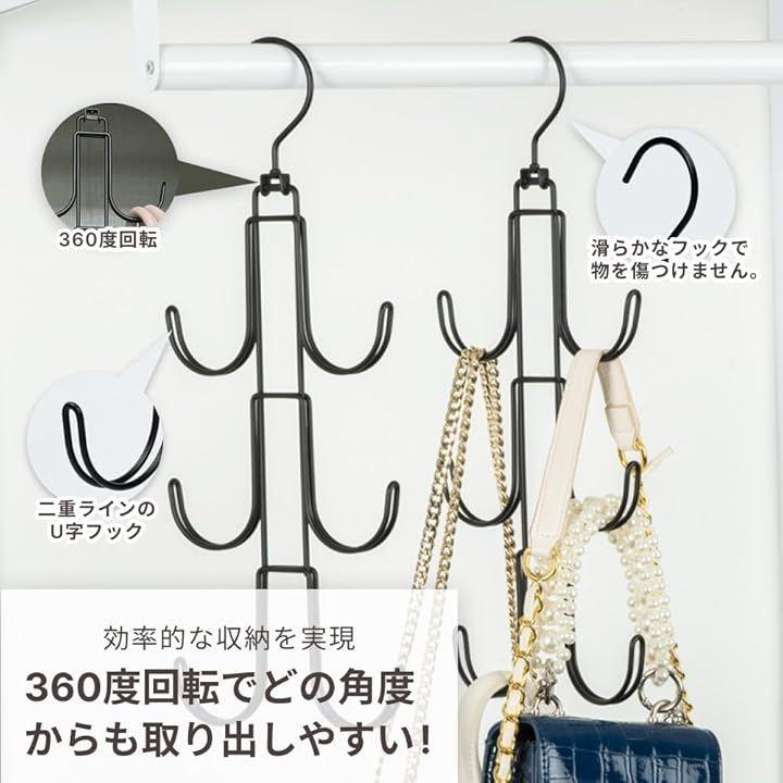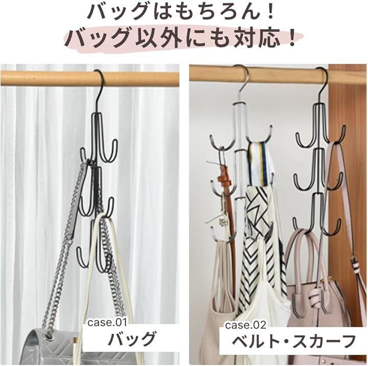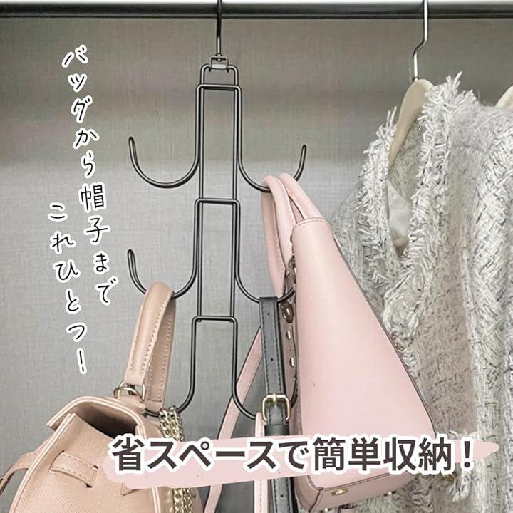 「バッグ以外もOK」バッグの収納に限らず、ベルトや帽子、ネクタイ、スカーフ、さらにはワードローブ用のバッグも効率的に整理することができ、整理整頓がお手軽に行えます。
