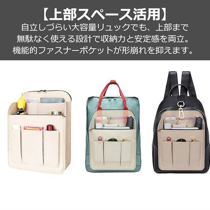 「上部スペース活用」自立しづらい大容量リュックでも、上部まで無駄なく使える設計で収納力と安定感を両立。