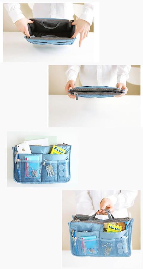 「多機能性」このバッグインバッグは、化粧品や小物を整理整頓するのに最適です。