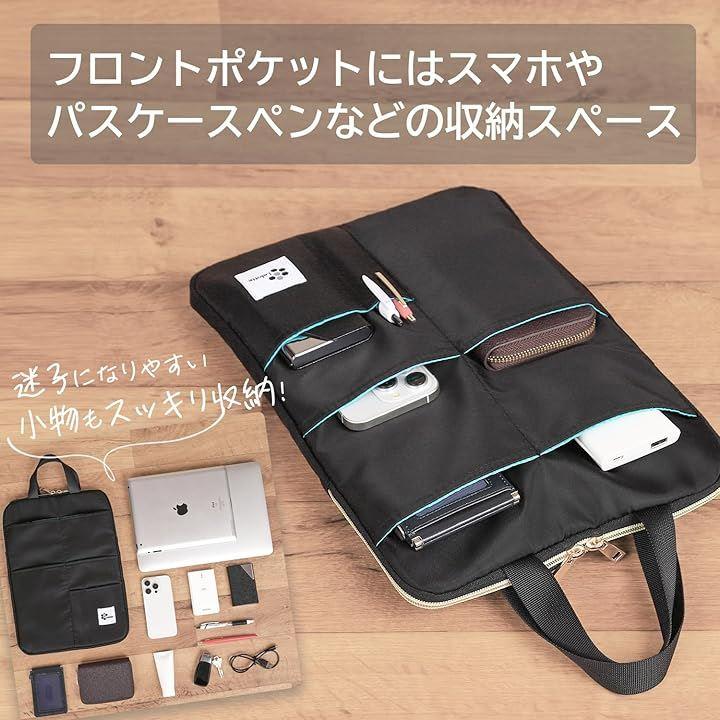 「使いやすい9個のポケット+メイン部分のファスナー収納」用途や収納物によって使い分けることができる9つのポケットを装備し、乱雑になりがちなバッグ内を見やすく、取り出しやすくしてくれます。