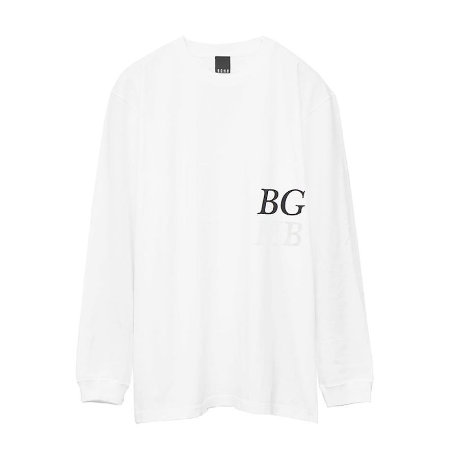 【DETAIL】・23'SS COLLECTIONより、BGロングスリーブTシャツです。・左脇部分に、インクを重ね塗りした立体感のあるキューブプリントによる「BG」と、ボディ同色のラバープリントによる「HB」を配した、当ブランドらしいシンプルながら一手間加えたデザインに仕上がっております。