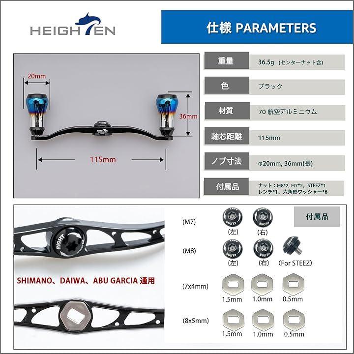 「付属品タイプ2 - 115mmハンドル」ダイワ(daiwa) ナット2個、シマノ(shimano)ナット2個、ダイワ(daiwa) STEEZ ナット1個、6角ワッシャー 6個(取付部4x7mm、5x8mm)、レンチ1個。