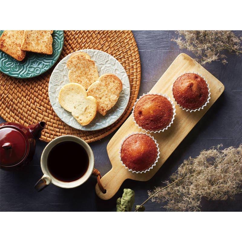 【内容】アーモンドパウンドケーキ×1、カップケーキ×4(プレーン・メープル×各2)、ワッフル×2(プレーン・チョコ×各1)、ラスク×2(シュガー・ココナッツ×各1)、レモンケーキ×2