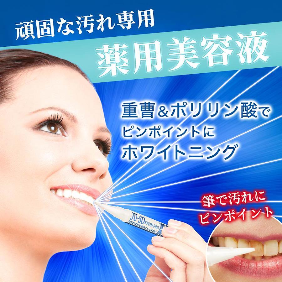 【商品名(JAN)】重曹ステインプロホワイトニングレーザー(4573187270642)【商品サイズ(約)】縦125mm×横12mm×高12mm【容量】2.8g【重さ】約12g【材質】有効成分:ポリエチレングリコール400、アラントインその他成分:炭酸水素ナトリウム、プロポリス抽出液、他【製造国】日本【商品情報】60秒でホワイトニング頑固な汚れ専用薬用美容液重曹&ポリリン酸でピンポイントにホワイトニング筆で汚れにピンポイント頑固な汚れに直接塗って60秒後スッキリ歯の黄ばみ、歯のくすみ、煙草のヤニ、ワイン・コーヒー等に日本製