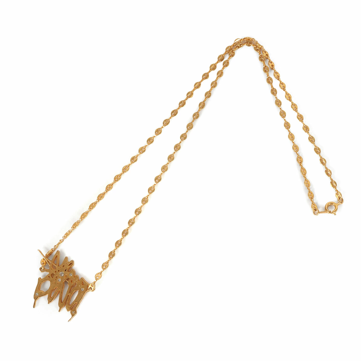 ラインストーンが装飾されたブランドロゴデザインのネックレスになります。