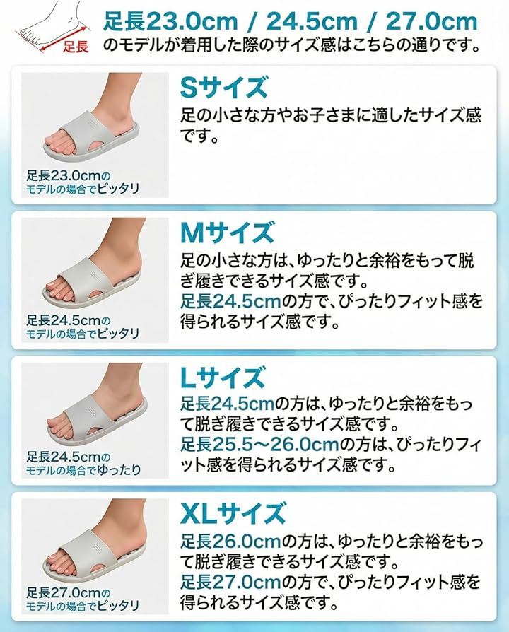 ベランダスリッパとしてゆったり履きたい方にも、足にフィットさせたい方にもおすすめです。