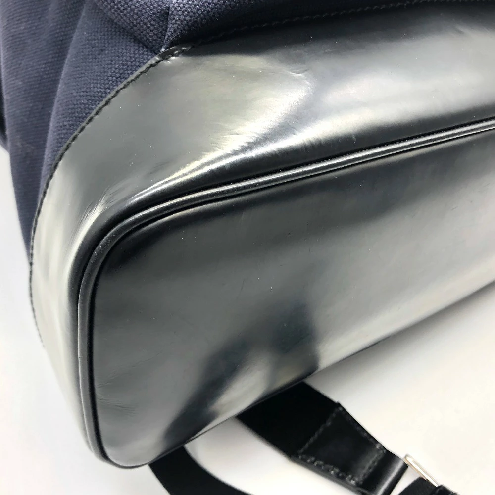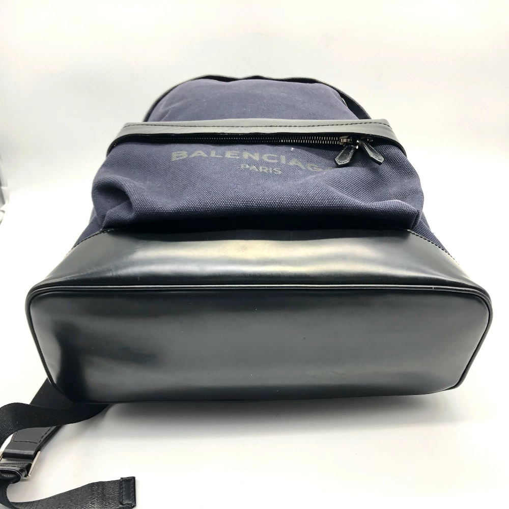 BALENCIAGA 392007 Logo Backpack Canvas/Leather Men's Navy [Pre-owned]