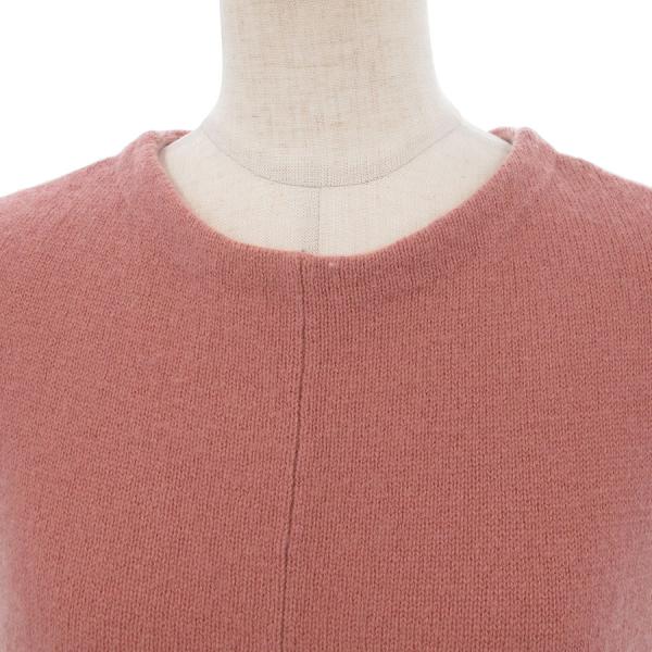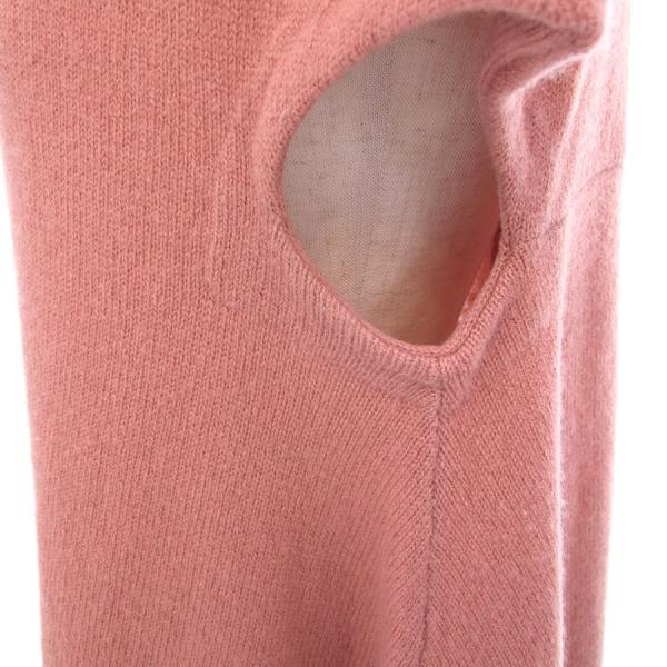 バレンシアガからピンクのニットワンピースが入荷しました。一重の軽やかなタイプです。前下部分に汚れがあります。左右の脇部分にも汚れが見られます。着用感が強く、全体的に毛羽立ちと起毛が見られ、ハンガー跡も残っています。背中だけ切り替えになってフレアに広がるフェミニンなラインです。どうぞお気軽にお問い合わせくださいませ。