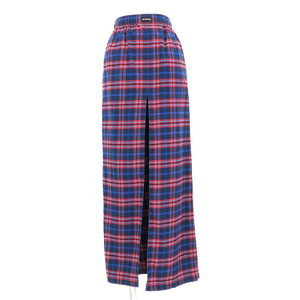 バレンシアガから紺×赤のチェック柄オーバースカートが入荷しました。全体的に起毛感が強めに見受けられ若干色の落ちも見られます。ウエストゴムのギャザー山に擦れのようなダメージも見られますのでBランクでのご案内です。お問い合わせお待ちしています。