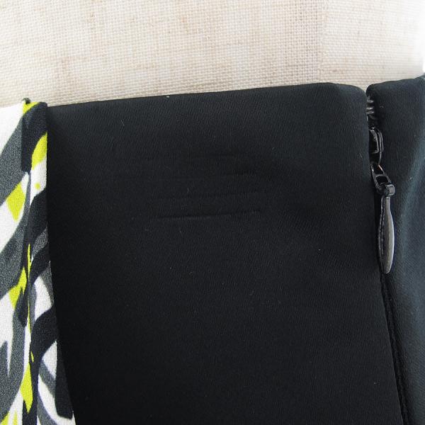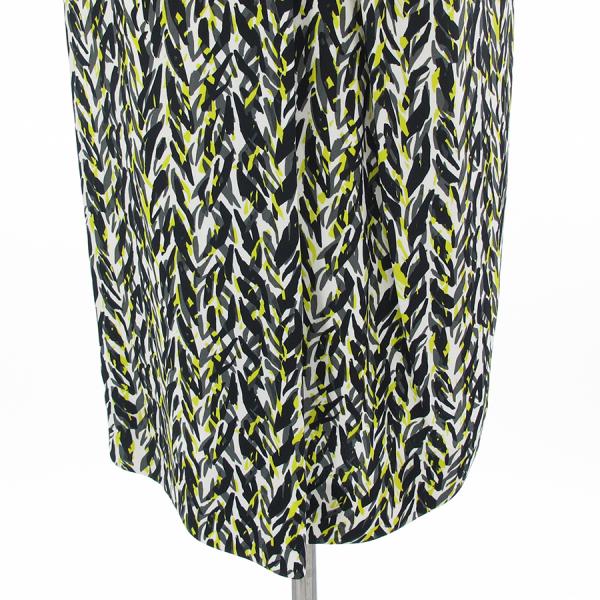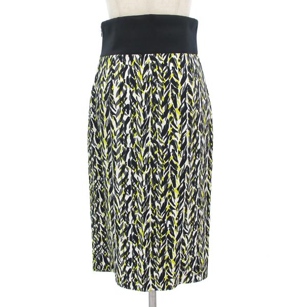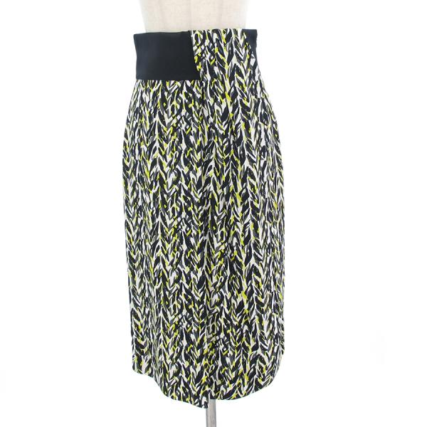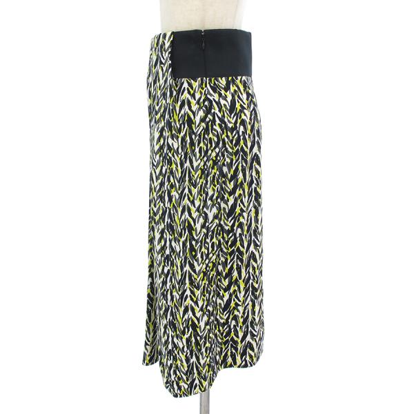 黒と白、イエローの幾何柄が素敵なロングスカートが入荷致しました。ウエストとスカートの切り替えし部分がおしゃれですね。ウエスト部分はサテン素材となっておりツヤ感も◎状態としましてはウエスト部分両サイド前後にハンガー跡のようなもの、白の裏地部分、後ろ側の裾に強めのツレ・スレが見受けられますが、表地の幾何柄部分はきれいな状態です。まだまだ活躍してくれそうです。